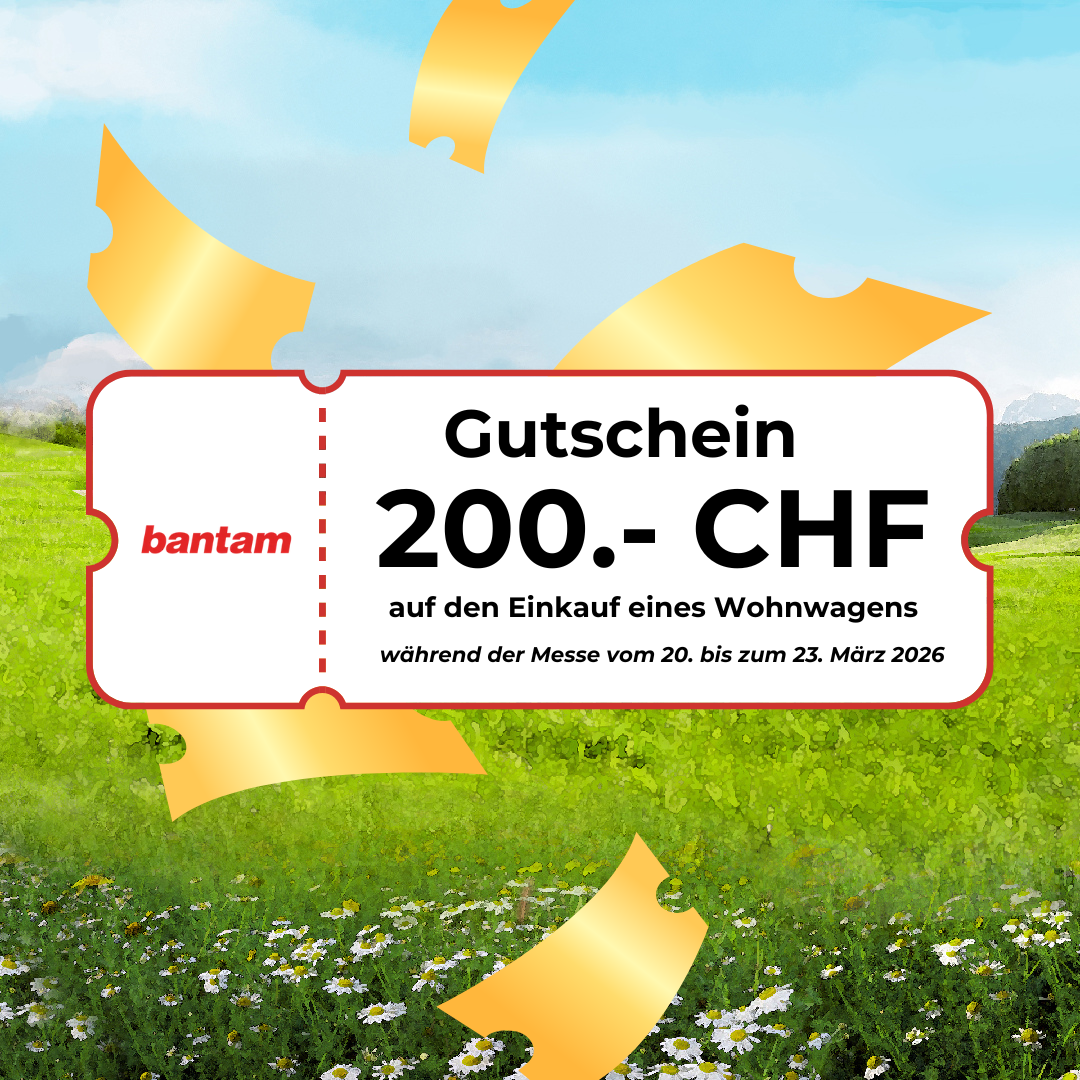 Profitieren Sie von aussergewöhnlichen Rabatten auf über 600 Wohnmobile und Wohnwagen und 15% Rabatt auf Campingartikel (nur Lagerware, exklusiv bereits reduzierte Artikel).